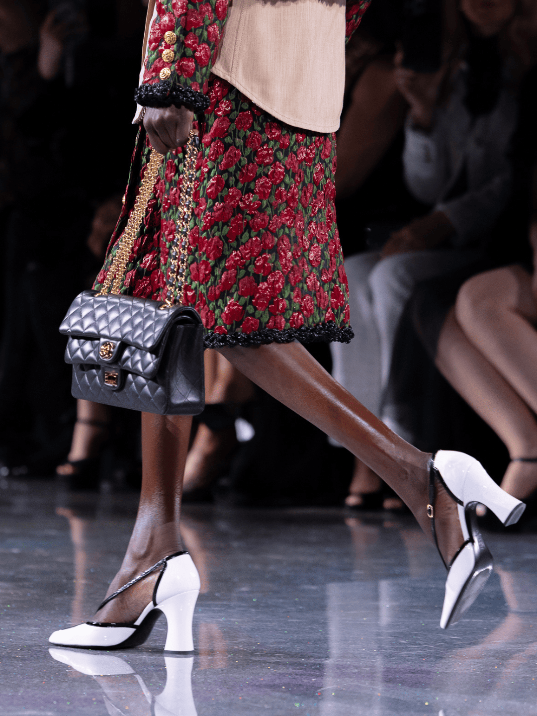 Jantung hati koleksi terbaru ini adalah setelan Chanel yang khas. Lama dianggap sebagai kreasi busana yang paling identik dengan nama rumah mode ini, the Chanel suit kali ini ditafsirkan menjadi beragam inkarnasi. Material bouclé tweed yang menjadi tradisi Chanel tetap bertahan sebagai elemen kunci, bersanding dengan ribbed knit serta bahan-bahan yang mengombinasikan serat alami dengan material teknis misalnya lurex atau silikon. Setelan suit pun menjadi kerangka berbusana yang fleksibel, bukan ‘seragam’ yang kaku.