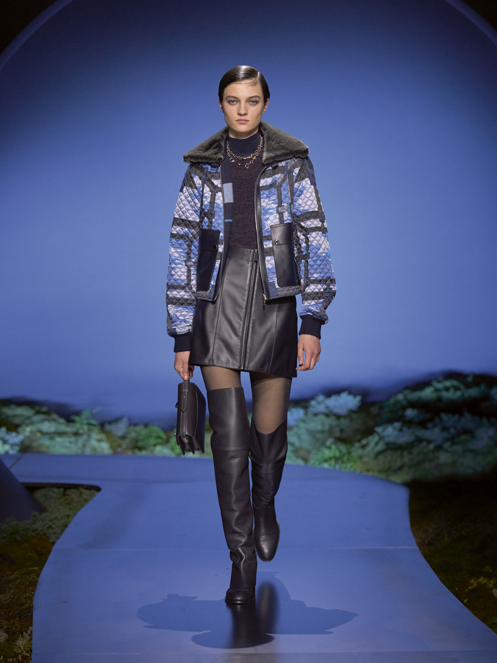 Material dan craftsmanship memainkan peran penting dalam menentukan karakter koleksi musim gugur/dingin 2026 Hermès. Kulit patina menonjolkan warisan Maison sekaligus memberikan kedalaman dan kekayaan pada siluet. Rajutan Solaro tampak berubah warna secara lembut seiring perubahan cahaya, sementara kain silk twill menangkap pantulan halus, menciptakan kilauan lembut saat pemakainya bergerak. Melalui interaksi tekstur dan cahaya ini, pakaian-pakaian tersebut mengekspresikan semangat chiaroscuro.